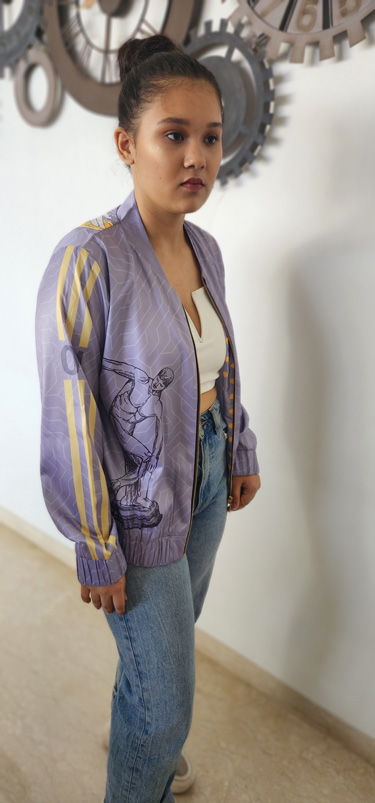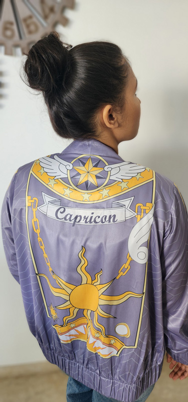 Classic bomber jacket with a vibrant print with your star sign at the back.