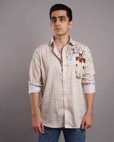 Elevate your style with this unique button-down shirt featuring a cool drawstring detail on the shoulder.